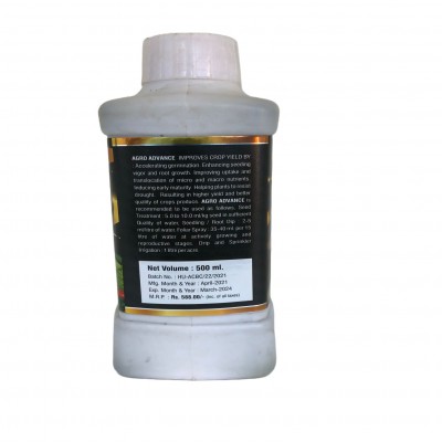 Agro Advance Humic Combination improves crop yield by accelerating germination. Enhancing seeding vigor and root growth. Improving uptake and translocation of micro and macro nutrients. Inducing early maturity Helping plants to resist drought. Resulting in higher yield and better quality of crops produce. AGRO ADVANCE is recommended to be used as follows.